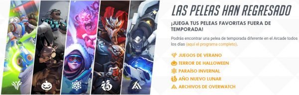También tendremos todos los modos de juegos de eventos anteriores tales como los Juegos de Verano, Terror de Halloween, Paraíso Invernal, Año nuevo Lunar y Archivos de Overwatch, los cuales estarán poniendo en la sección de arcade por cierto tiempo. Puedes consultar el calendario aquí.