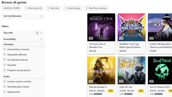 Se ha actualizado la Microsoft Store ubicada en Xbox.com con herramientas de filtros y enlistados, opciones que nos permitirá mostrar el contenido por precio, suscripciones, lenguajes soportados, accesibilidad, entre otras opciones